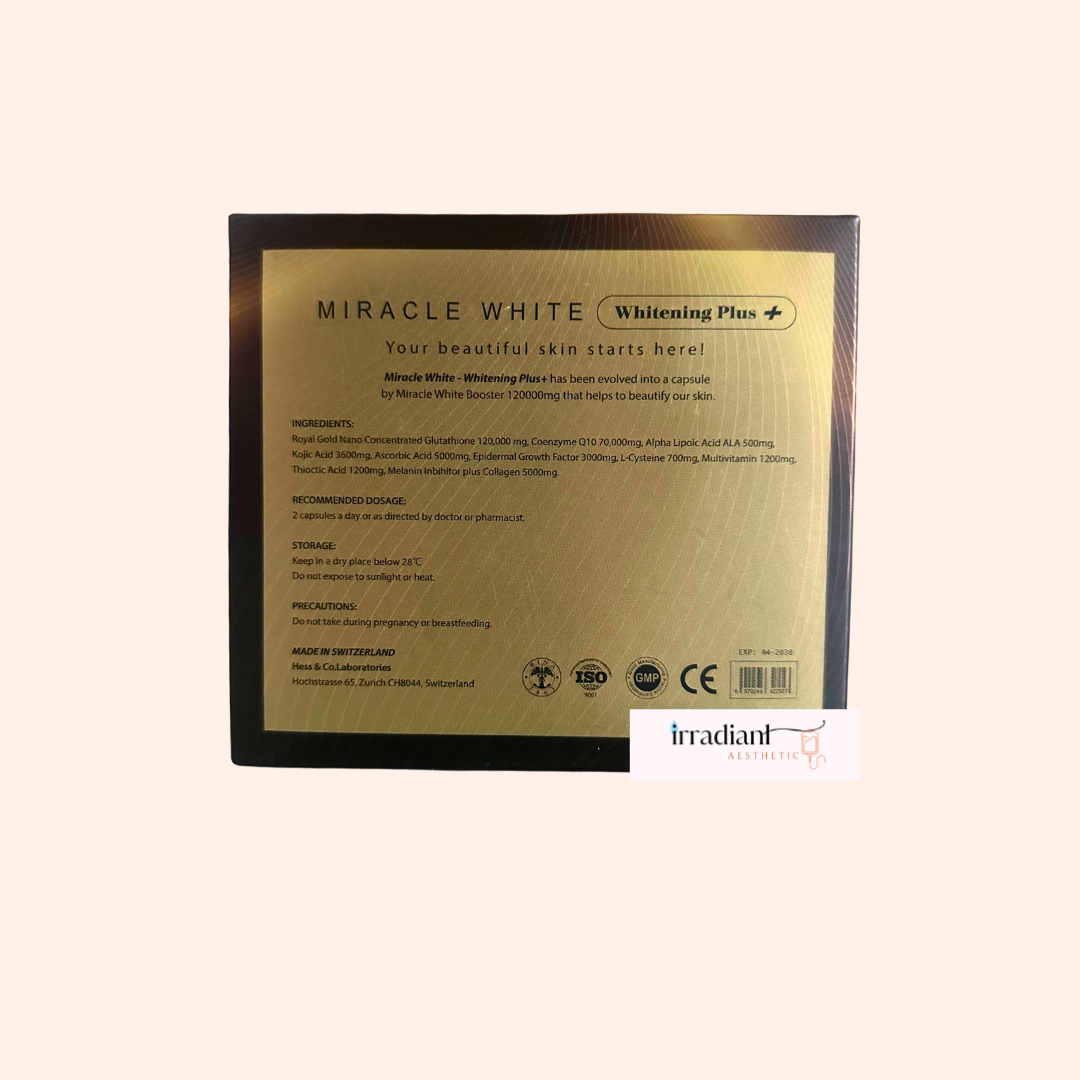 Discover the secret to radiant, youthful skin with Miracle White Booster Whitening Plus+ capsule. This advanced formula combines high-strength skin booster with brightening and anti-aging properties.